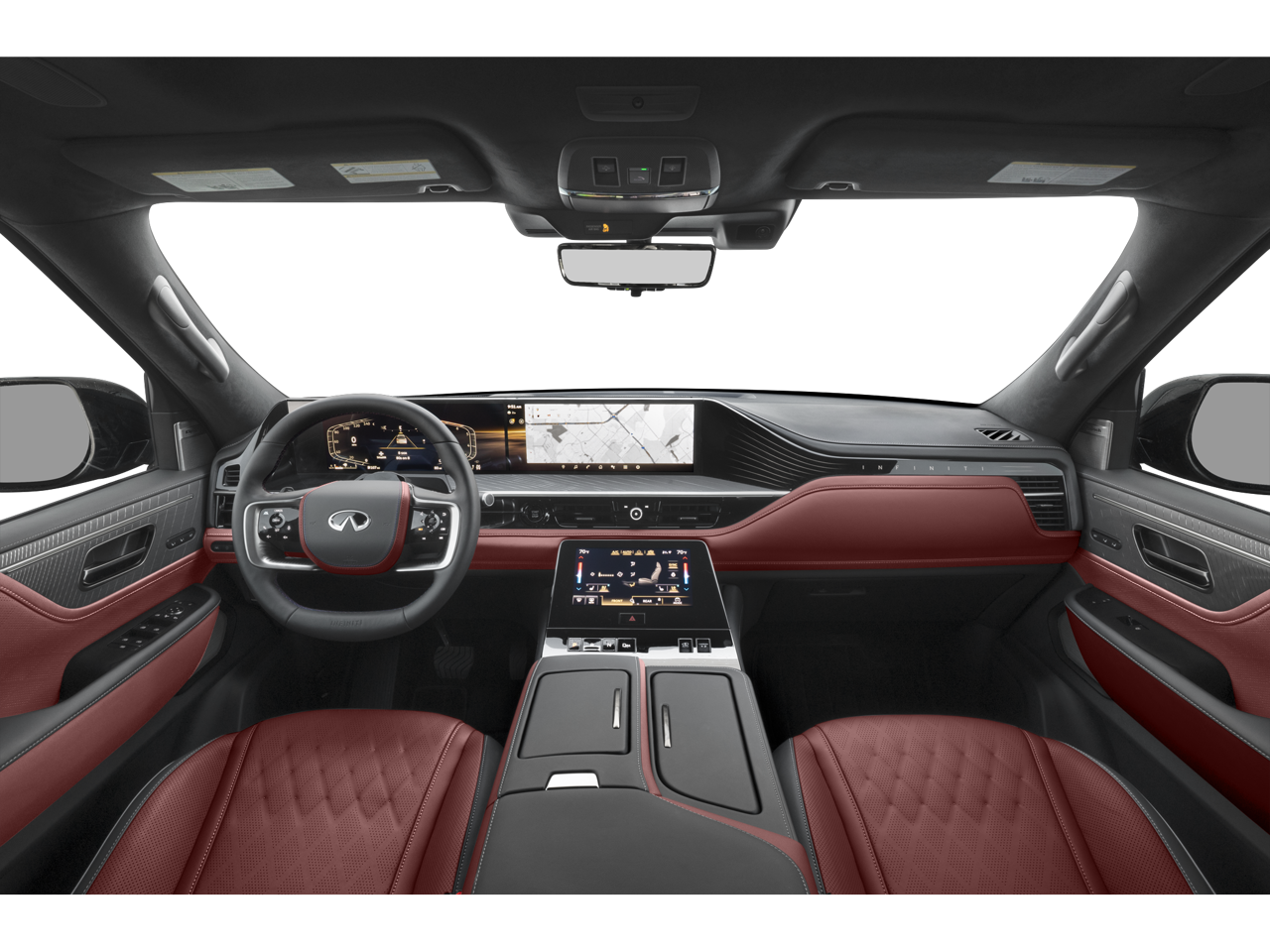 Check out this good-looking 2026 INFINITI QX80 with the following amenities 3rd row seats: bench, 4-Wheel Disc Brakes, ABS brakes, Adaptive suspension, Air Conditioning, Alloy wheels, AM/FM radio: SiriusXM with 360L, Anti-whiplash front head restraints, Apple CarPlay/Android Auto, Audio memory, Auto High-beam Headlights, Auto tilt-away steering wheel, Auto-dimming door mirrors, Auto-dimming Rear-View mirror, Auto-leveling suspension, Automatic temperature control, Brake assist, Bumpers: body-color, Compass, Delay-off headlights, Driver door bin, Driver vanity mirror, Dual front impact airbags, Dual front side impact airbags, Electronic Stability Control, Emergency communication system: INFINITI InTouch, Four wheel independent suspension, Front anti-roll bar, Front Bucket Seats, Front Center Armrest, Front dual zone A/C, Front reading lights, Fully automatic headlights, Garage door transmitter: myQ Connected Garage, Genuine wood dashboard insert, Genuine wood door panel insert, Heads-Up Display, Heated and Climate Controlled Front Bucket Seats with Massage, Heated door mirrors, Heated front seats, Heated rear seats, Heated steering wheel, HVAC memory, Illuminated entry, Knee airbag, Leather steering wheel, Low tire pressure warning, Memory seat, Navigation system: Google Built-in, Occupant sensing airbag, Outside temperature display, Overhead airbag, Overhead console, Panic alarm, Passenger door bin, Passenger vanity mirror, Power door mirrors, Power driver seat, Power Liftgate, Power moonroof, Power passenger seat, Power steering, Power windows, Radio data system, Radio: Klipsch Premiere Audio System, Rain sensing wipers, Rear air conditioning, Rear anti-roll bar, Rear reading lights, Rear seat center armrest, Rear window defroster, Rear window wiper, Reclining 3rd row seat, Remote keyless entry, Security system, Semi-Aniline Premium Leather Seating Surfaces, Speed control, Speed-sensing steering, Split folding rear seat, Spoiler, Steering wheel memory, Steering wheel mounted audio controls, Tachometer, Telescoping steering wheel, Tilt steering wheel, Traction control, Trip computer, Turn signal indicator mirrors, Variably intermittent wipers, Ventilated front seats, Ventilated rear seats, and Wheels: 22 x 8.5J Cast Aluminum-Alloy.