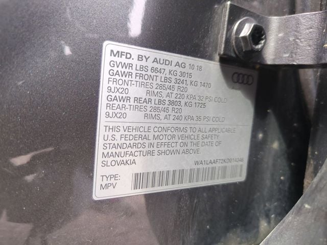 Thank you for considering Lafontaine INFINITI Nissan for your next vehicle! We are home of the Family Deal, and the buy 3, 1 free tire guarantee! All vehicles go through a rigorous inspection process, are serviced to the highest standards, and detailed with state of the art equipment before being placed on the lot. Stop by for your own family deal today! Check out the Features on this one Cold Weather Package (3-Spoke Multifunction Steering Wheel w/Paddles, Black Rubber All-Weather Floor Mats (Set of 4), and Heated Rear Seats), Convenience Package, LED Interior Lighting Package, Premium Plus Package (3D Bose Surround Sound System, Audi Virtual Cockpit, LED Headlights w/Dynamic Indicators, and Topview Camera System), Towing Package, Navigation system: MMI Navigation plus, Power moonroof, 10 Speakers, 3.204 Axle Ratio, 3rd row seats: bench, 4-Wheel Disc Brakes, ABS brakes, Air Conditioning, Alloy wheels, AM/FM radio: SiriusXM, Audi smartphone interface (Apple CarPlay/Android Auto), Auto-dimming Rear-View mirror, Automatic temperature control, Brake assist, Bumpers: body-color, CD player, Compass, Delay-off headlights, Driver door bin, Driver vanity mirror, Driver's Seat Mounted Armrest, Dual front impact airbags, Dual front side impact airbags, Electronic Stability Control, Emergency communication system: Audi connect CARE, Exterior Parking Camera Rear, Four wheel independent suspension, Front & Rear Doors Audi Beam-Rings, Front anti-roll bar, Front Bucket Seats, Front dual zone A/C, Front fog lights, Front reading lights, Fully automatic headlights, Garage door transmitter: HomeLink, Heated door mirrors, Heated Front Bucket Seats, Heated front seats, High intensity discharge headlights: Xenon plus, Illuminated entry, Leather Seating Surfaces, Leather Shift Knob, Leather steering wheel, Low tire pressure warning, Memory seat, Occupant sensing airbag, Outside temperature display, Overhead airbag, Panic alarm, Passenger door bin, Passenger seat mounted armrest, Passenger vanity mirror, Power door mirrors, Power driver seat, Power Liftgate, Power passenger seat, Power steering, Power windows, Radio data system, Radio: Audi MMI Navigation Plus, Rain sensing wipers, Rear air conditioning, Rear anti-roll bar, Rear fog lights, Rear reading lights, Rear seat center armrest, Rear Seat Entertainment Preparation, Rear window defroster, Rear window wiper, Remote keyless entry, Roof rack: rails only, Security system, Speed control, Speed-sensing steering, Split folding rear seat, Spoiler, Steering wheel memory, Steering wheel mounted audio controls, Tachometer, Telescoping steering wheel, Tilt steering wheel, Traction control, Trip computer, Turn signal indicator mirrors, Variably intermittent wipers, Wheels: 19 5-V-Spoke Design, and Wheels: 20 10-Spoke-Star Design Bi-Color.