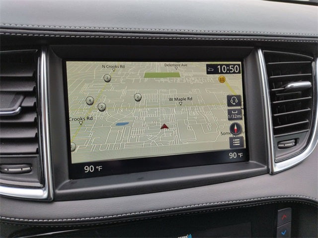 Thank you for considering Lafontaine INFINITI Nissan for your next vehicle! We are home of the Family Deal, and the buy 3, 1 free tire guarantee! All vehicles go through a rigorous inspection process, are serviced to the highest standards, and detailed with state of the art equipment before being placed on the lot. Stop by for your own family deal today! Check out the Features on this one QX50 ESSENTIAL, 4D Sport Utility, I4, CVT, AWD, Graphite Shadow, Graphite Leather, Auto-dimming Rear-View mirror, Brake assist, Electronic Stability Control, Fully automatic headlights, Heated front seats, Heated steering wheel, Navigation system: INFINITI InTouch Navigation, Power Liftgate, Power moonroof, 16 Speakers, 4-Wheel Disc Brakes, 5.846 Axle Ratio, ABS brakes, Air Conditioning, Alloy wheels, AM/FM radio: SiriusXM, Anti-whiplash front head restraints, Auto High-beam Headlights, Automatic temperature control, Black Splash Guards (Set of 4), Bumpers: body-color, CD player, Climate Controlled Front Bucket Seats, Delay-off headlights, Driver door bin, Driver vanity mirror, Dual front impact airbags, Dual front side impact airbags, Emergency communication system: INFINITI InTouch, Floor Mats, Four wheel independent suspension, Front anti-roll bar, Front Bucket Seats, Front Center Armrest, Front dual zone A/C, Front fog lights, Front reading lights, Garage door transmitter: HomeLink, Heated door mirrors, Illuminated entry, Illuminated Kick Plates, Knee airbag, Leather Shift Knob, Leather-Appointed Seat Trim, Low tire pressure warning, Memory seat, Occupant sensing airbag, Outside temperature display, Overhead airbag, Overhead console, Panic alarm, Passenger door bin, Passenger vanity mirror, Power door mirrors, Power driver seat, Power passenger seat, Power steering, Power windows, Radio data system, Radio: Bose Performance Series Audio System, Rain sensing wipers, Rear anti-roll bar, Rear reading lights, Rear seat center armrest, Rear side impact airbag, Rear window defroster, Rear window wiper, Remote keyless entry, Security system, Speed control, Speed-sensing steering, Speed-Sensitive Wipers, Split folding rear seat, Spoiler, Steering wheel mounted audio controls, Tachometer, Telescoping steering wheel, Tilt steering wheel, Traction control, Trip computer, Turn signal indicator mirrors, Variably intermittent wipers, Ventilated front seats, and Wheels: 19 Silver Painted Aluminum Alloy.