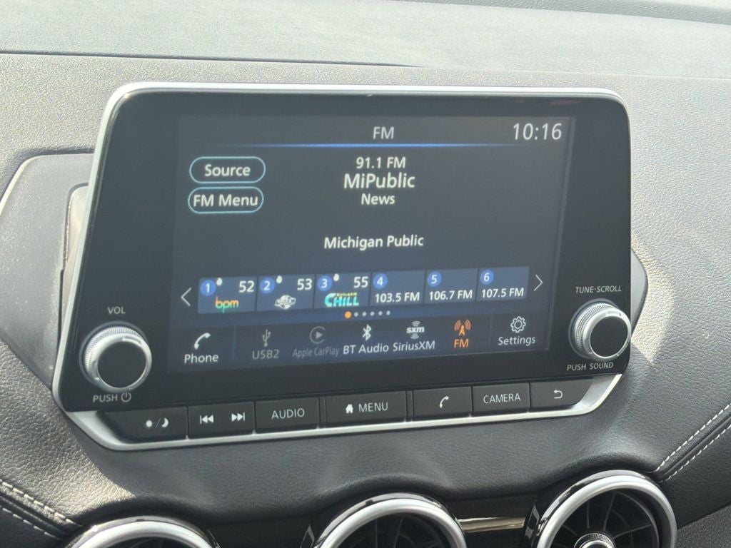 - Radio: AM/FM w/RDS/MP3/Aux-In -inc: 6 speakers plus 2 tweeters in A-pillar, 8" color display w/multi-touch control, streaming audio via Bluetooth®, Bluetooth® hands-free phone system, hands-free text messaging assistant, Siri Eyes Free, Google Assistant voice recognition w/Apple CarPlay and Android Auto, NissanConnect, (1) front USB connection port (type A), (1) additional front USB (type C), (1) charge-only USB (type A) center console and SiriusXM radio w/advanced audio features